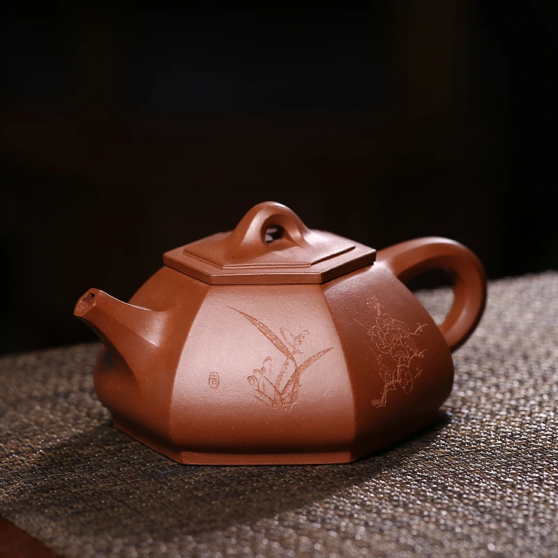 290ML Yixing Famous All Handmade Purple Clay Teapot Art Pattern Dahongpao Stone Scoop Pot Raw Ore Z