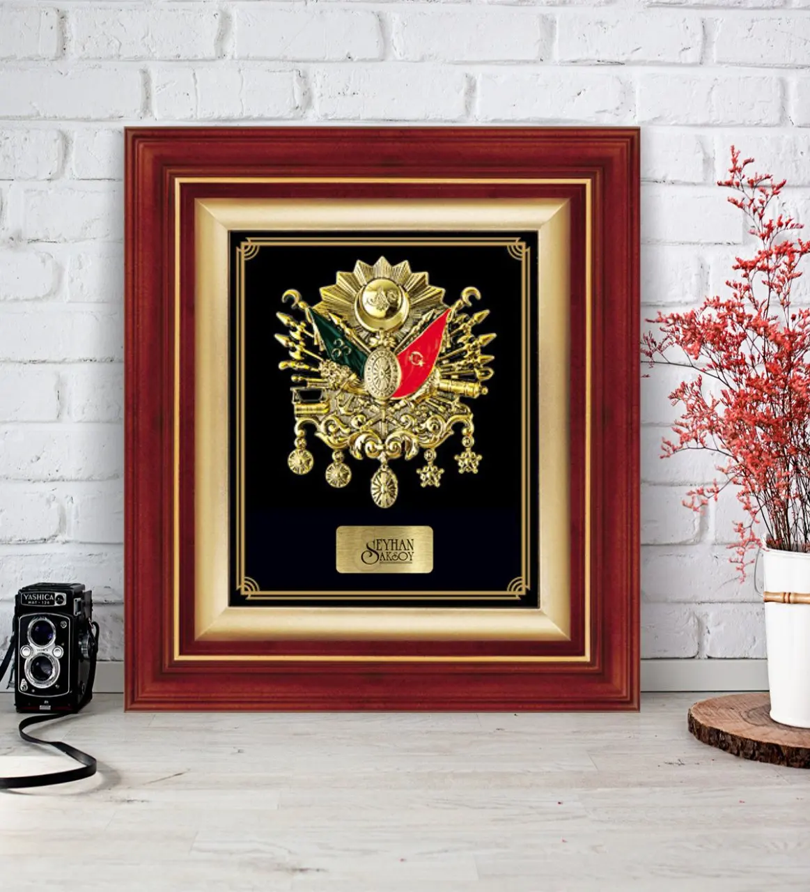 ORIGINAL Personalized Ottoman State Coat Of Arms Framed Panel Table-GOLD