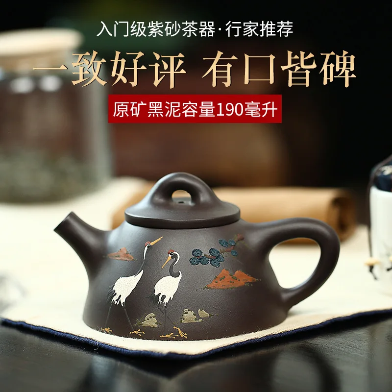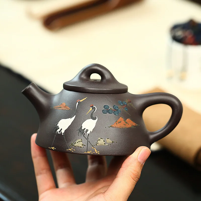 BEST Pine Crane Overlord Stone Drum Coloured Drawing Or Pattern Dark-red Enameled Pottery Teapot Kungfu