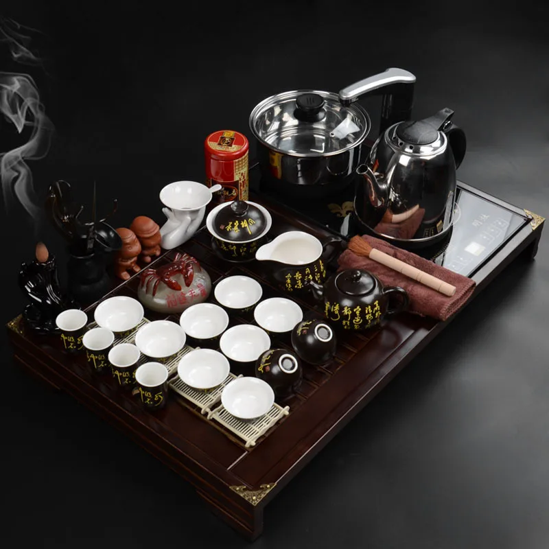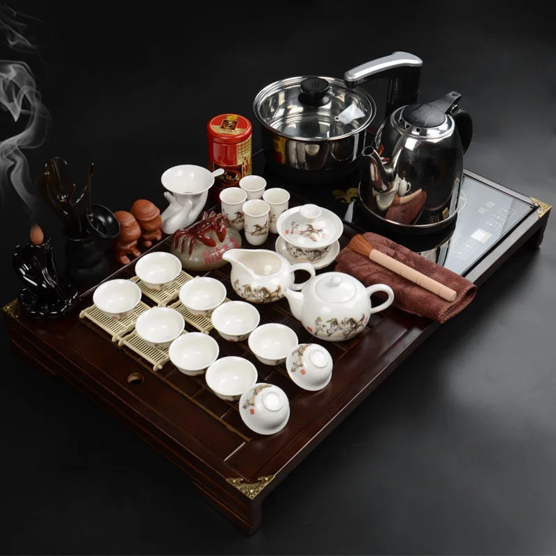 Best Solid Wood Tea Tray Ceramic Kung Fu Tea Set for Home & Office Use Teapoy Table Four-in-One Customiz