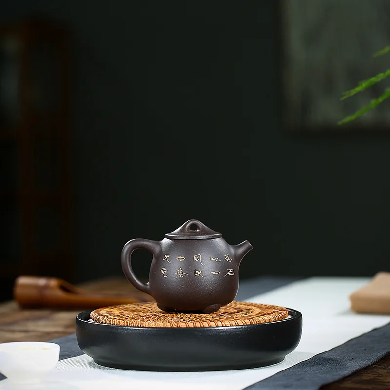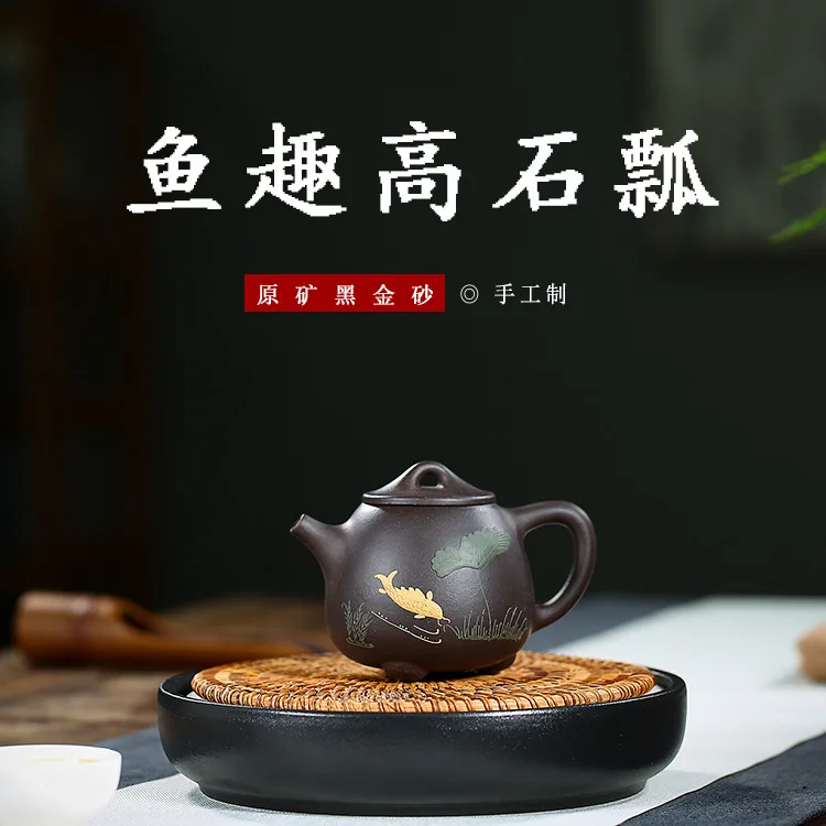 HOT SALE Yixing Dark-red Enameled Pottery Teapot Raw Ore Black Gold Sand Mud Painting Fish Interest High Sto