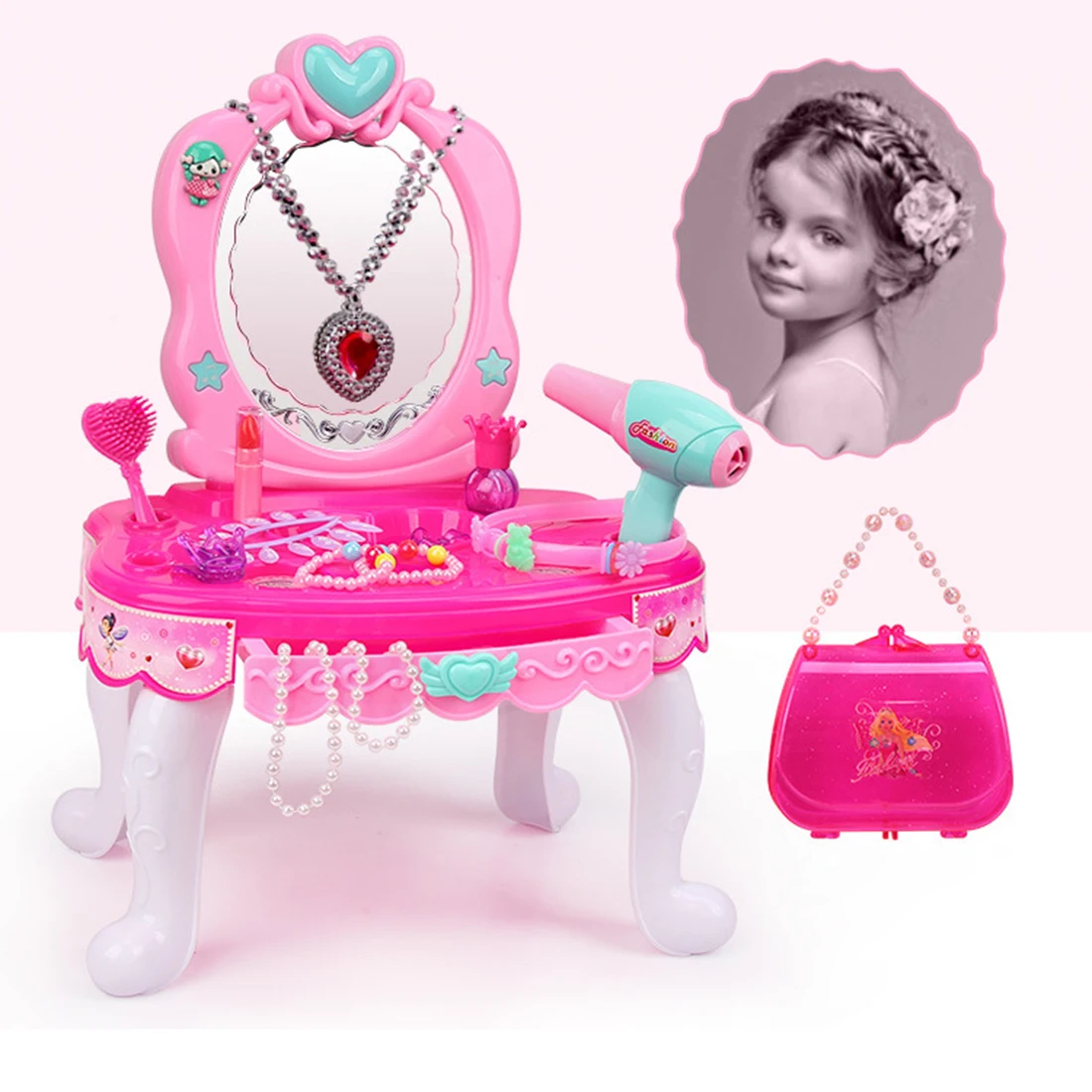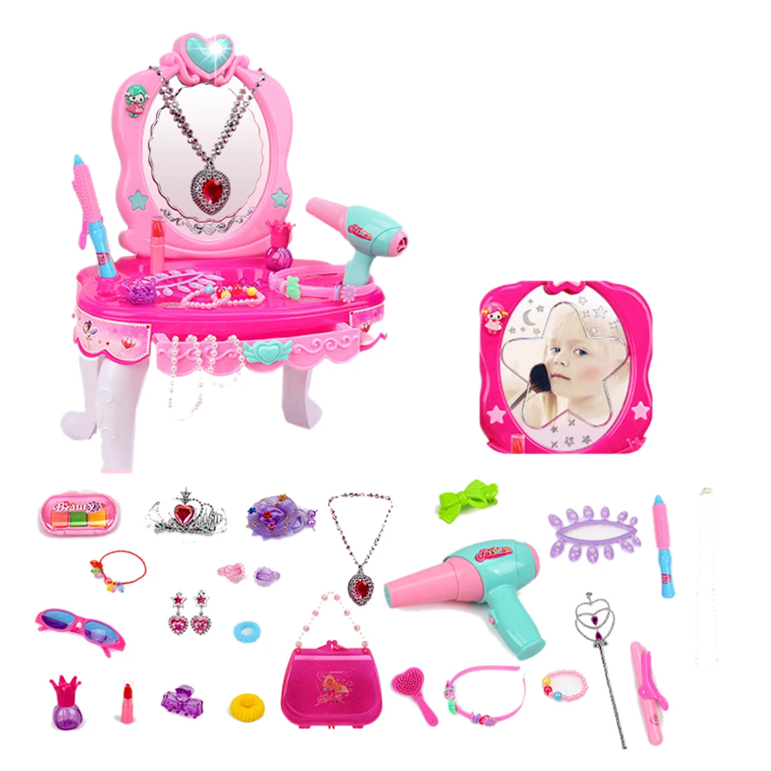 BEST QUALITY 24Pcs Children Pretend Dressing Table Playset Simulation Hair Dryer Pretend Play Makeup Toys Girls
