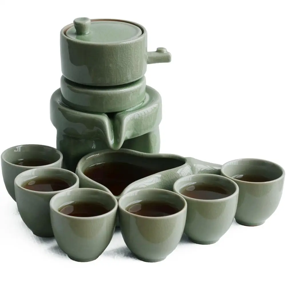 BEST Chinese Gongfu Tea Gift Set Service Automatic Handmade Stone-Mill Design porcelain Tea Pot 6 Cups H
