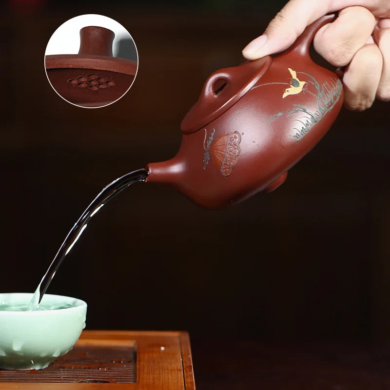 BEST SELLER Hundred Believe Dark-red Enameled Pottery Teapot Yixing Pure Full Manual Bright Red Robe Painting S