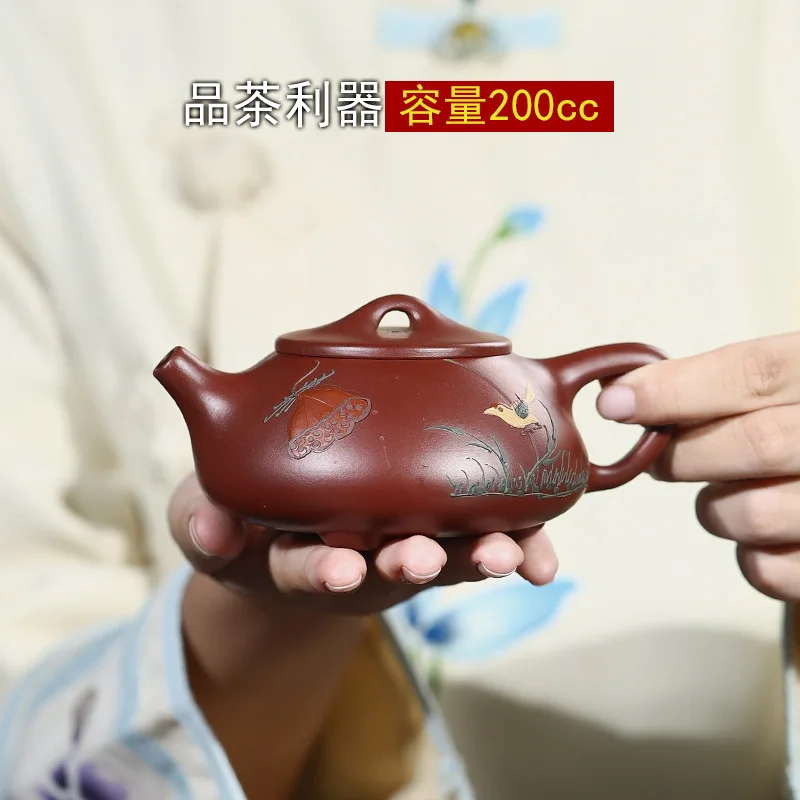 Hundred Believe Dark-red Enameled Pottery Teapot Yixing Pure Full Manual Bright Red Robe Painting S