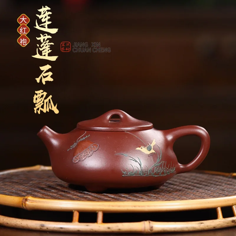 ORIGINAL Hundred Believe Dark-red Enameled Pottery Teapot Yixing Pure Full Manual Bright Red Robe Painting S