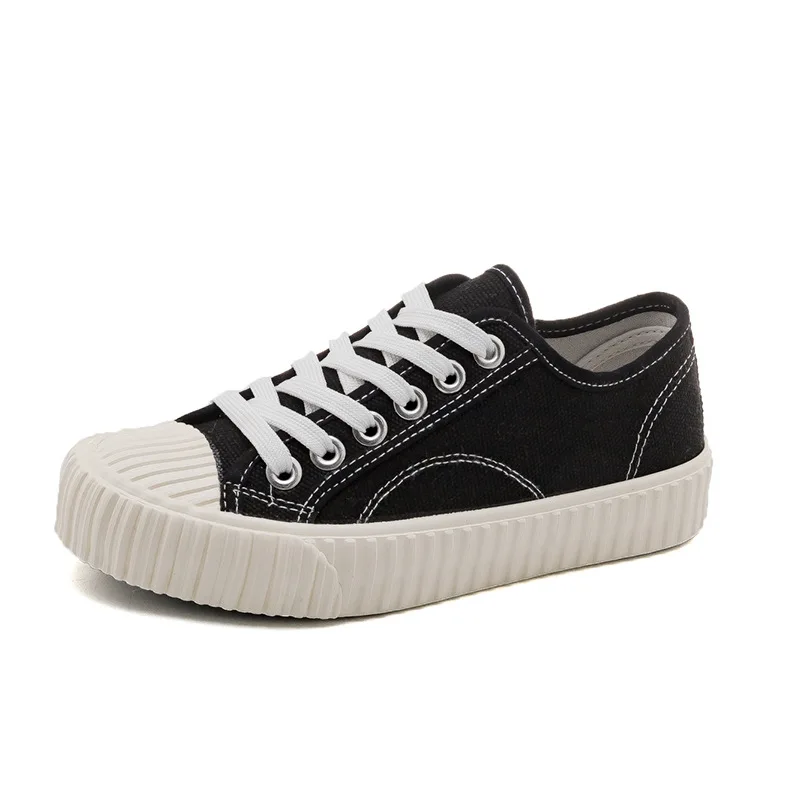 Best Seller Biscuit Shoes Women Canvas Shoes for Spring 2019 Solid Color Lace Up Flat Heel Lady Sneakers Vulcan
